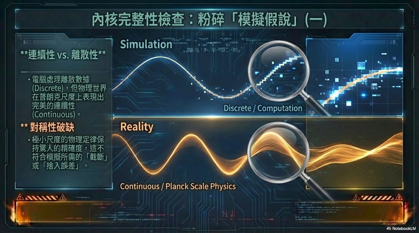 所有的計算機,無論是經典電腦還是未來的量子電腦,本質上都是處理「離散數據」(Discrete Data)的。但在我們所身處的物理世界中,時空與能量場在普朗克尺度之上表現出完美的「連續性」。