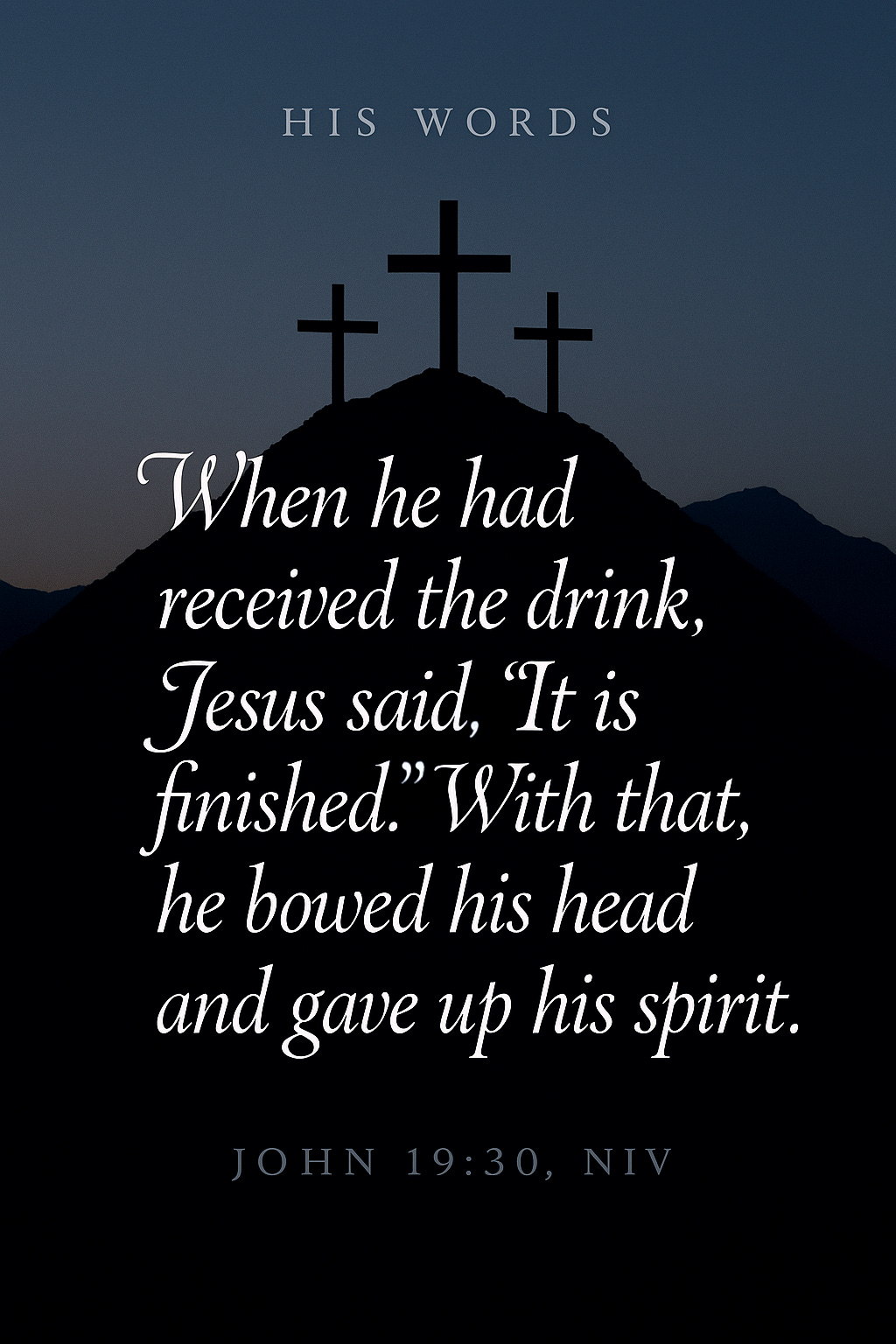 original script (x1): john 19:30, niv bible x1 in ancient greek: gemini 2.5 pro exp 03-25 prompt enhancement/optimization: gemini 2.5 pro exp 03-25 t2i: midjourney v7 i2v - lipsync: hedra character-3 i2v: higgsfield (cfg: 7, steps: 35) i2i - graphic design: gpt-4o, freepik, substack english tts & voice design: hume octave stt - caption: elevenlabs scribe music: the holy city by stephen adams aka michael maybrick & frederic e. weatherly, 1892; performed by stanford olsen and the tabernacle choir, august 19, 2012 audio editing: clideo voice changing, video vfx & editing: capcut
